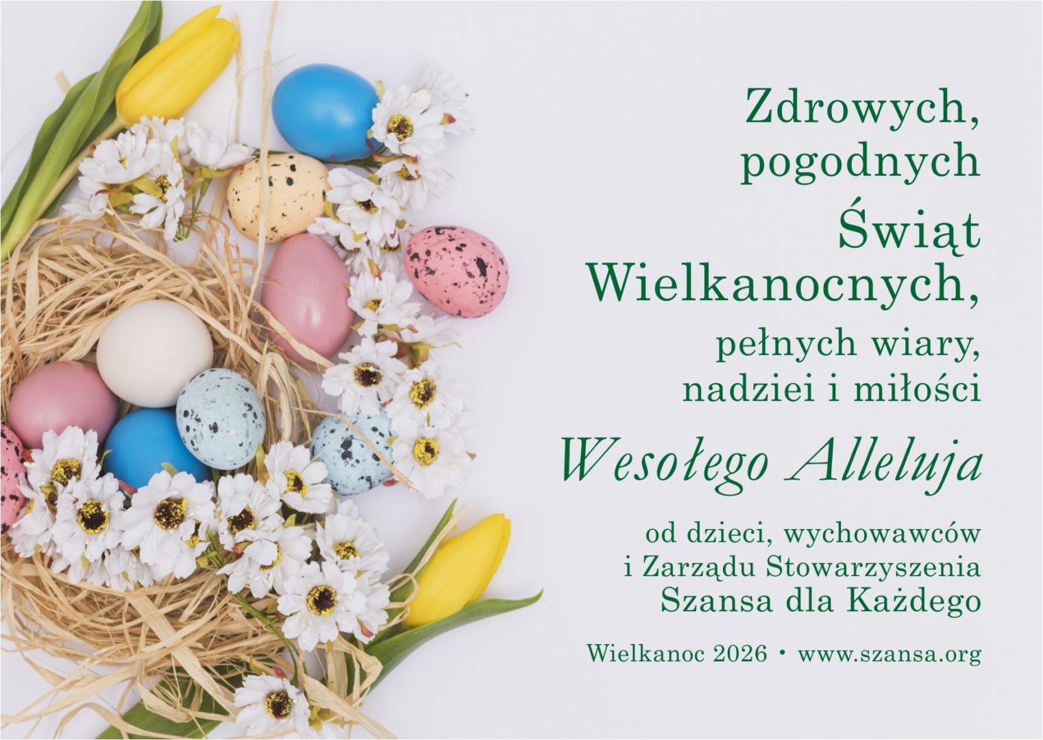 Dobrego, uśmiechniętego Nowego 2026 Roku od wszystkich dzieci, wychowawców, wolontariuszy i Zarządu Stowarzyszenia „Szansa dla Każdego”!